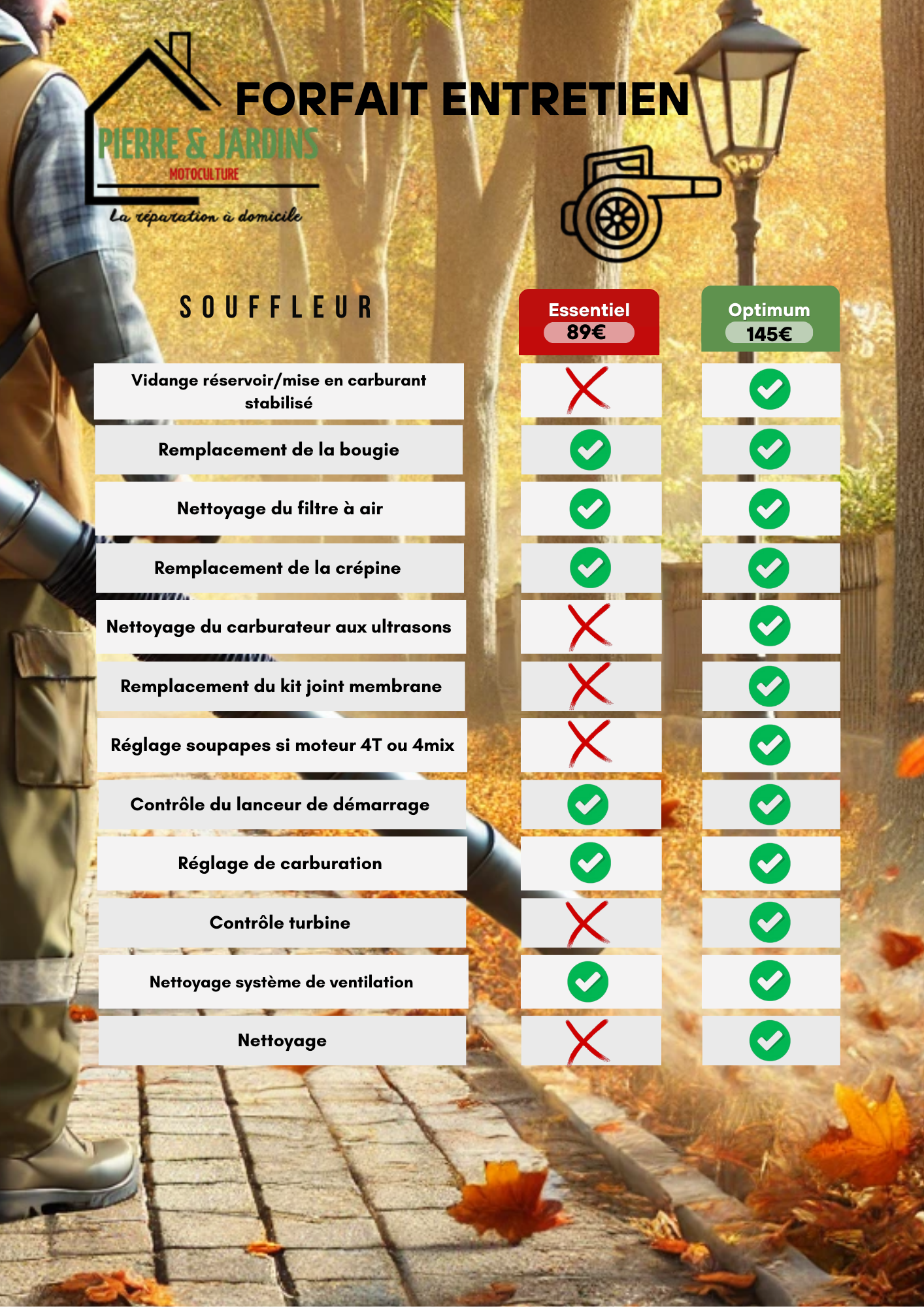 Optez pour la tranquillité et le confort d'un entretien OPTIMUM pour votre souffleur à feuille.